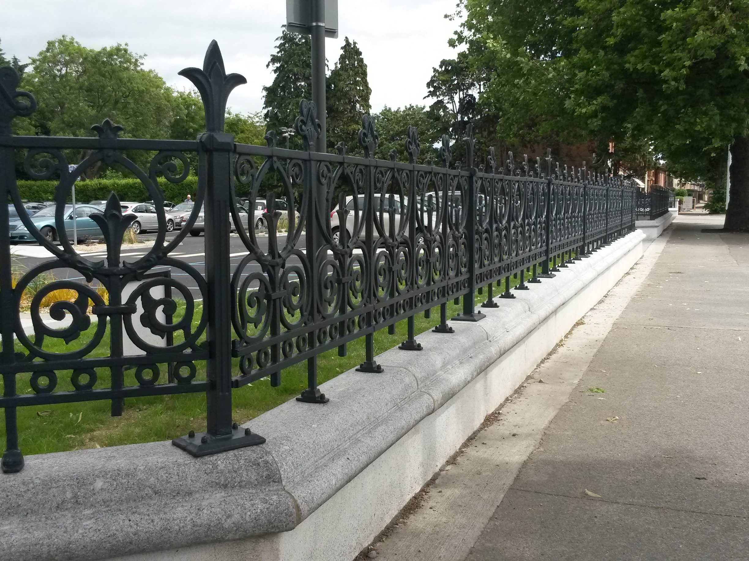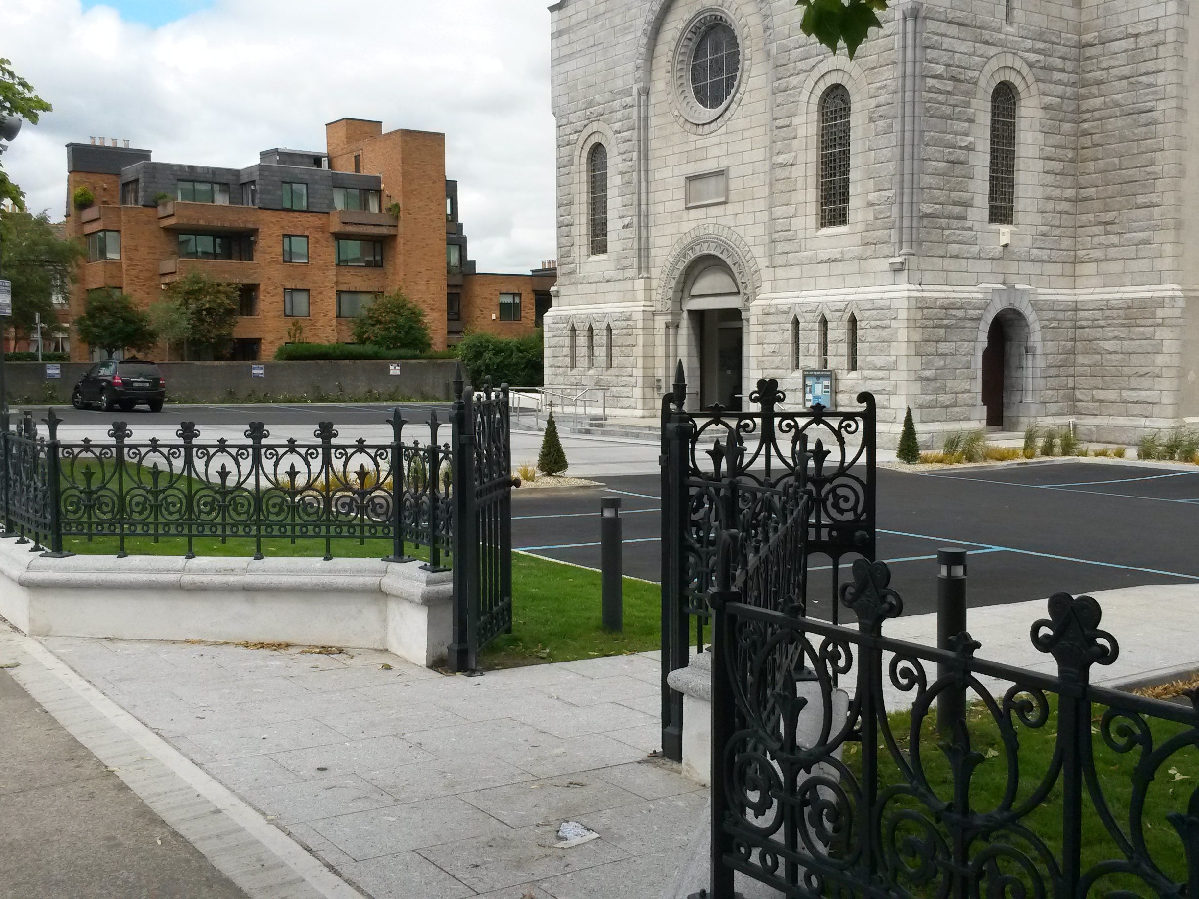 We supplied the railings, gates and posts for this job. We worked closely with the architects on this project to create this stunning new forecourt and boundary wall on this busy road front site. The project required a solution to create a new parking facility for the church while allowing public access to the parking facility through a pay and display system outsourced to a management company.